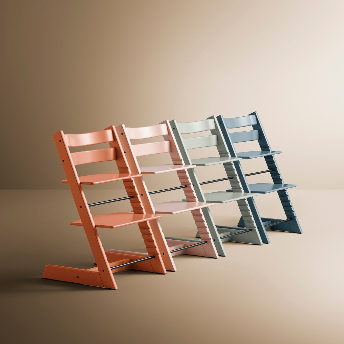 Tripp Trapp® se fabrica principalmente con maderas de haya y robles europeos, algunas de las mejores se encuentran en Europa Central. Estos bosques son conocidos por la calidad y cantidad de estos preciados recursos. La madera seleccionada para la silla Tripp Trapp® le aporta un acabado natural, con un hermoso veteado que proporciona a cada silla una apariencia única que, además, se vuelve más atractiva con el tiempo. Este aspecto es de suma importancia para la Tripp Trapp®, ya que se trata de una silla de diseño de primera calidad destinada a durar muchos años.